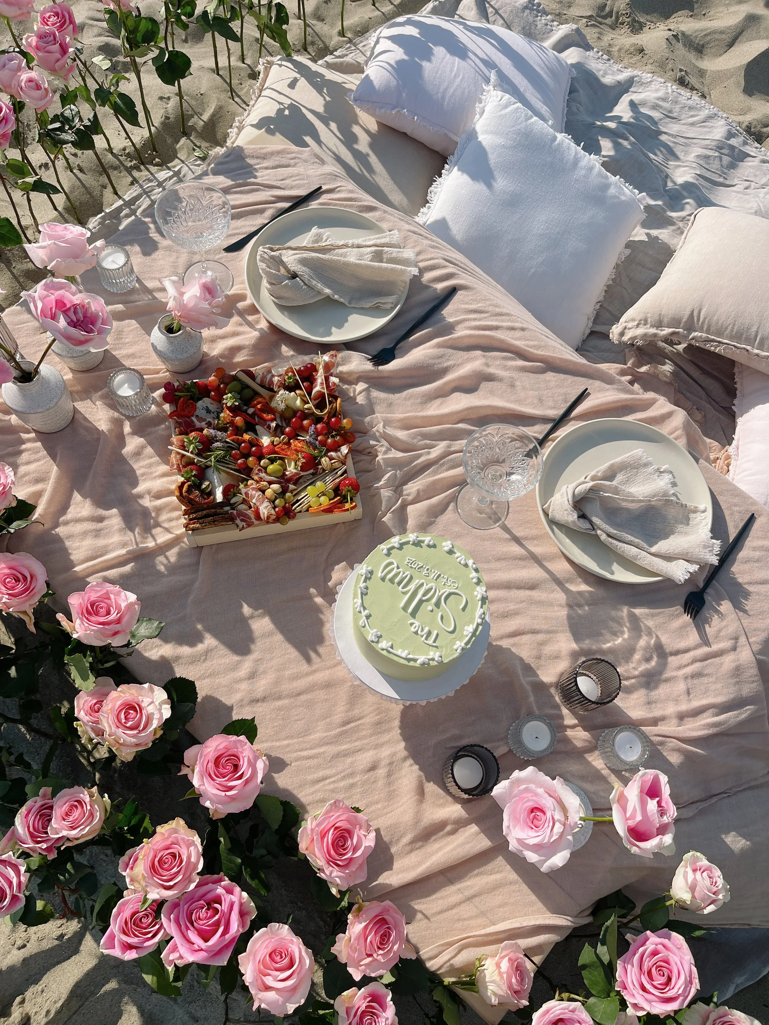 Our signature rose-filled picnic is perfect for your dreamy, romantic proposal. Picture this: a secluded spot overlooking the breathtaking coastline, roses poking out of the sand leading up to your picnic, and the soft rustle of rose petals as you kneel down to ask the most important question of your life. A photographer can discreetly capture this special moment, ensuring that your memories will be forever preserved. Let us help you create a proposal that will be remembered as the epitome of romance.